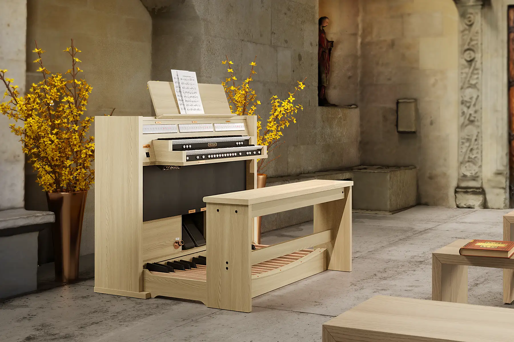 A DOMUS S5 2 manuálos hangszer 39 stoppal és 3 zenekari hangszínnel. Viscount digitális hangrendszer.